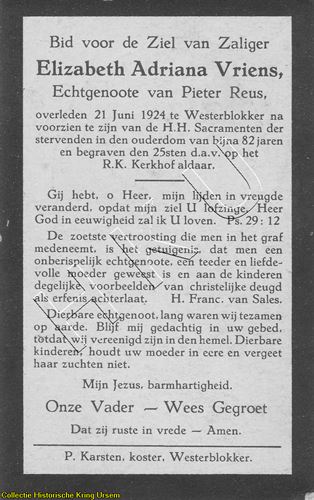 | Voorna(a)m(en) overledene | : | Elizabeth Adriana |